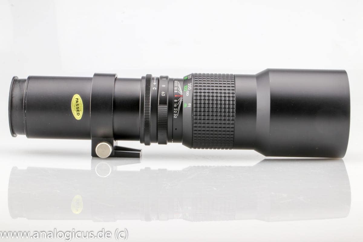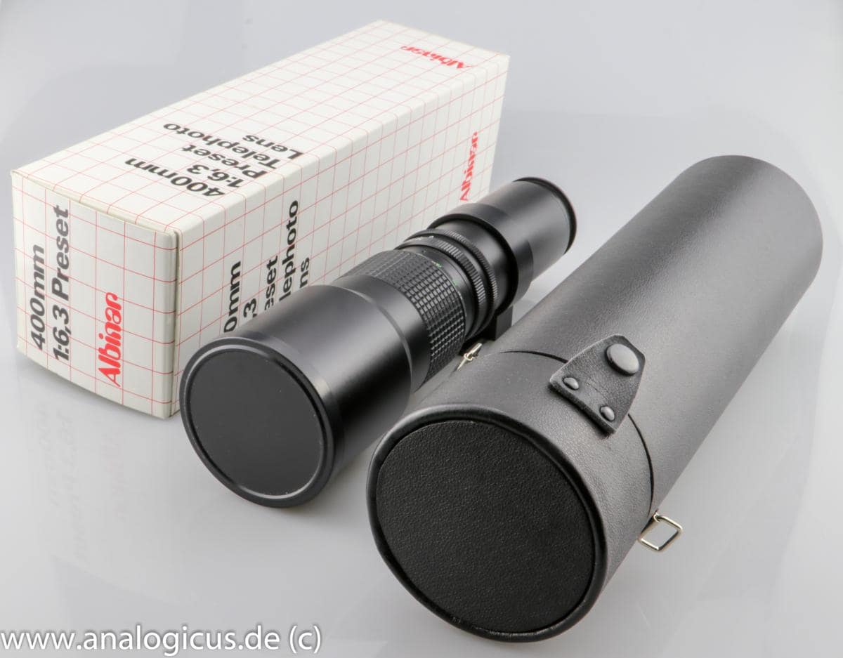 Dieses Albinar – Teleobjektiv hatte ich in einem hervorragenden, fast neuwertigen Zustand erworben. Trotz seiner Länge ist es handlich und zeigt eine butterweiche Fokussierung. Die Blenden rasten gut hörbar ein. Insgesamt wirkt das Albinar in seiner Metallkonstruktion solide gebaut – nichts wackelt. Mein Modell verfügt über insgesamt 13 Blendenlamellen, einen T2 – Schraubanschluss und einen zusätzlichen Abblendring (C-0). Die Linsen sind klar und ohne Nebel oder Fungus, einfach ein Topzustand. Trotz seiner Länge und Metallbauweise ist es erstaunlich leicht.