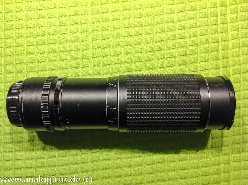 Bei Blende und Entfernungseinstellung muss man umdenken, alles wird anders herum eingestellt (von rechts nach links). Die Blende rastet hörbar ein, der Zoomring lässt sich fein einstellen. Vorteilhaft ist, dass der Tubus trotz Schiebezoom nicht automatisch ausfährt. Es existieren zudem Zwischenblendenstufen. Mein Exemplar verfügte über ein Pentax PK Bajonett. Die Abbildungsleistung ist ordentlich, lediglich bei Offenblende ist es noch etwas soft, dann weiter abgeblendet sind die Aufnahmen deutlich schärfer. Ich würde dem Objektiv daher die Schulnote 2- geben.