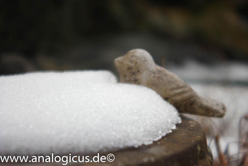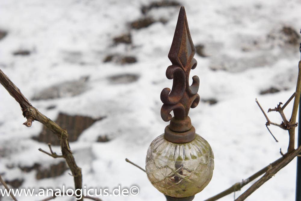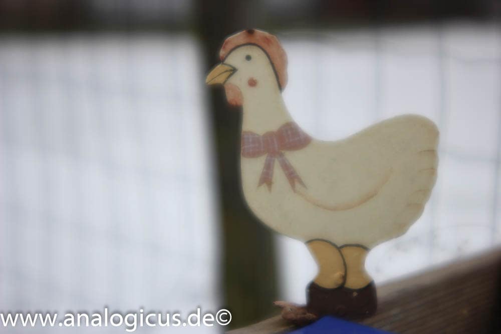 Ich kontrollierte zunächst, ob bei dem kalten Tag vielleicht die Linsen beschlagen wären, aber dem war nicht so. Eine interessante Linse also für z.B. „Soft- Porträts“. Bereits um eine Blendenstufe abgeblendet wurden die Bilder klarer und ab f/ 5.6 zeigte sich eine gute Schärfe bei diesem Objektiv. Interessant auch, dass sich sowohl der Blendenring als auch der Fokussierring nur in die andere Richtung drehen lassen. Da muss man wie im englischen Straßenverkehr umdenken. Insgesamt ist das Objektiv recht klein und leicht, Blenden- und Fokussierring laufen weich und präzise. Meine Note für dieses Objektiv: 3+. Das Objektiv ist insbesondere für die Freunde von „softigen“ Bildern, sicher eine Empfehlung wert…